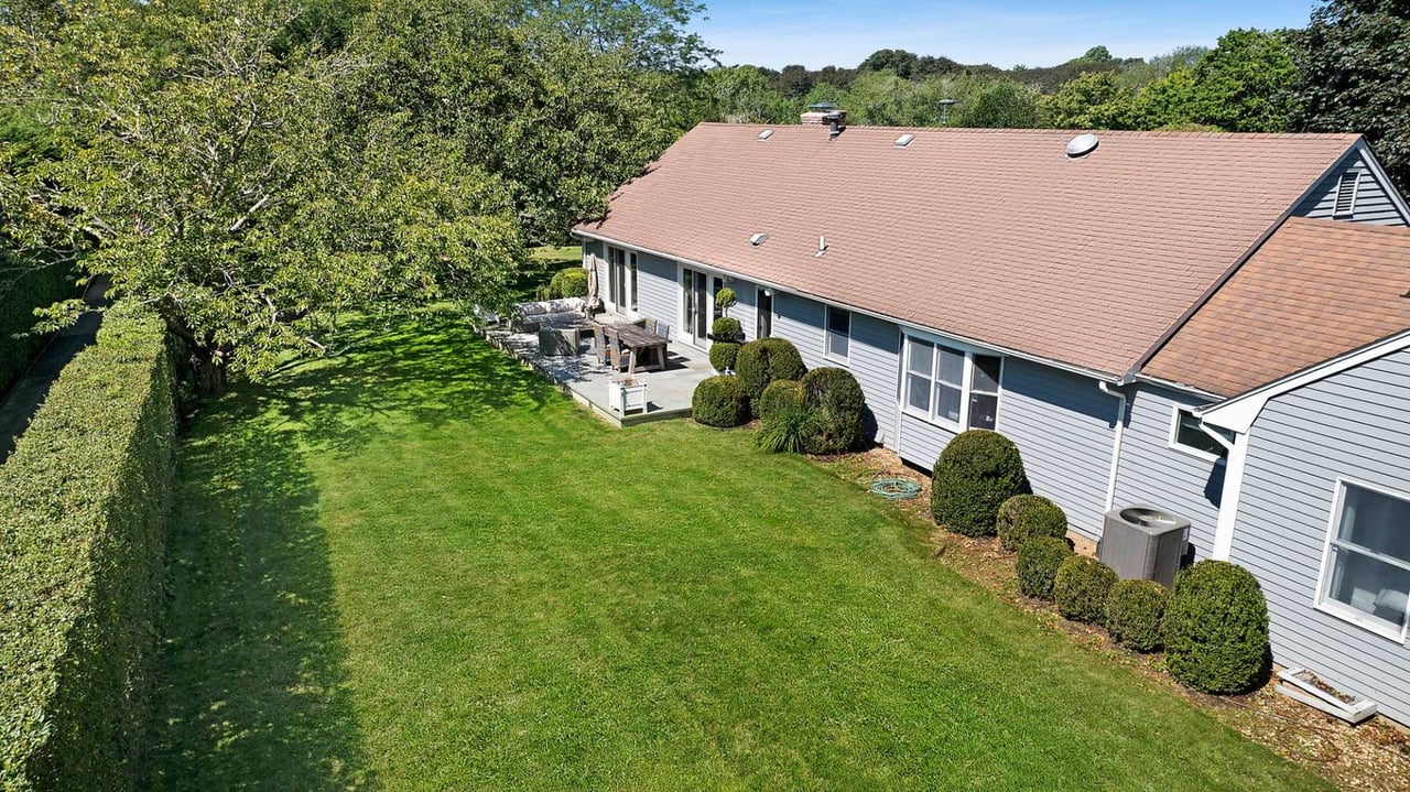 Nestled in a prime location, south of the highway in the Village of East Hampton, this elegant low slung traditional manor offers a perfect blend of luxury and comfort, ideal for those seeking a refined living experience within easy reach of coveted East Hampton Village beaches, shopping, restaurants and more. Only two owners ever, this well-maintained residence is ready for its next chapter. A generous library and great room sit back to back, both with wood burning fireplaces. Formal light-filled dining leads to a chef's kitchen that lends itself for entertaining, featuring high ceilings, and large windows flooding all three continuous spaces with natural light, and views into the garden. The four bedroom home is currently configured as a three, all ensuite, with room to expand and add a pool. Step outside to the beautifully landscaped yard, where you can enjoy alfresco dining or simply relax in the serene surroundings. Located on a picturesque 0.5-acre lot, this home offers both privacy and easy access to local shops, fine dining, and cultural attractions, all while savoring the tranquility of your own private haven. Embrace the East Hampton Village lifestyle and make your mark at this exquisite residence. Room for expansion and a blank canvas to covert to your needs. Will not last. Priced to sell at 5.995M.