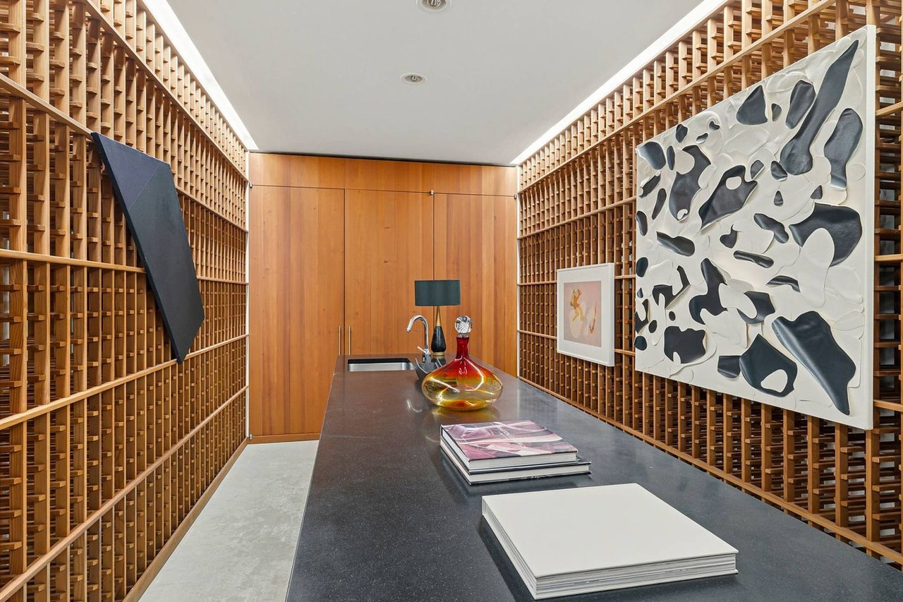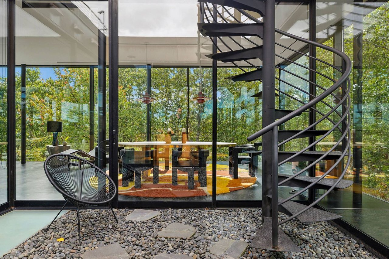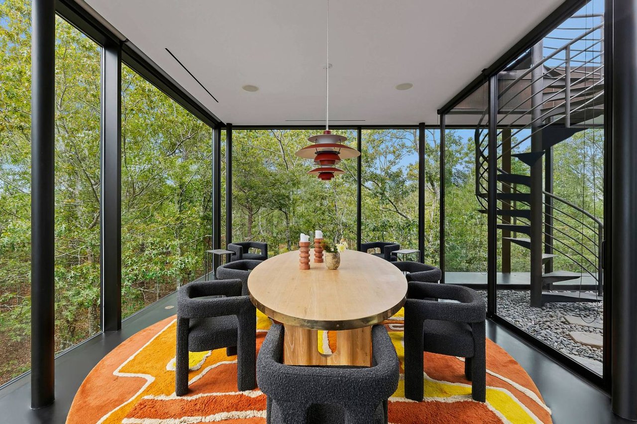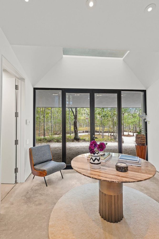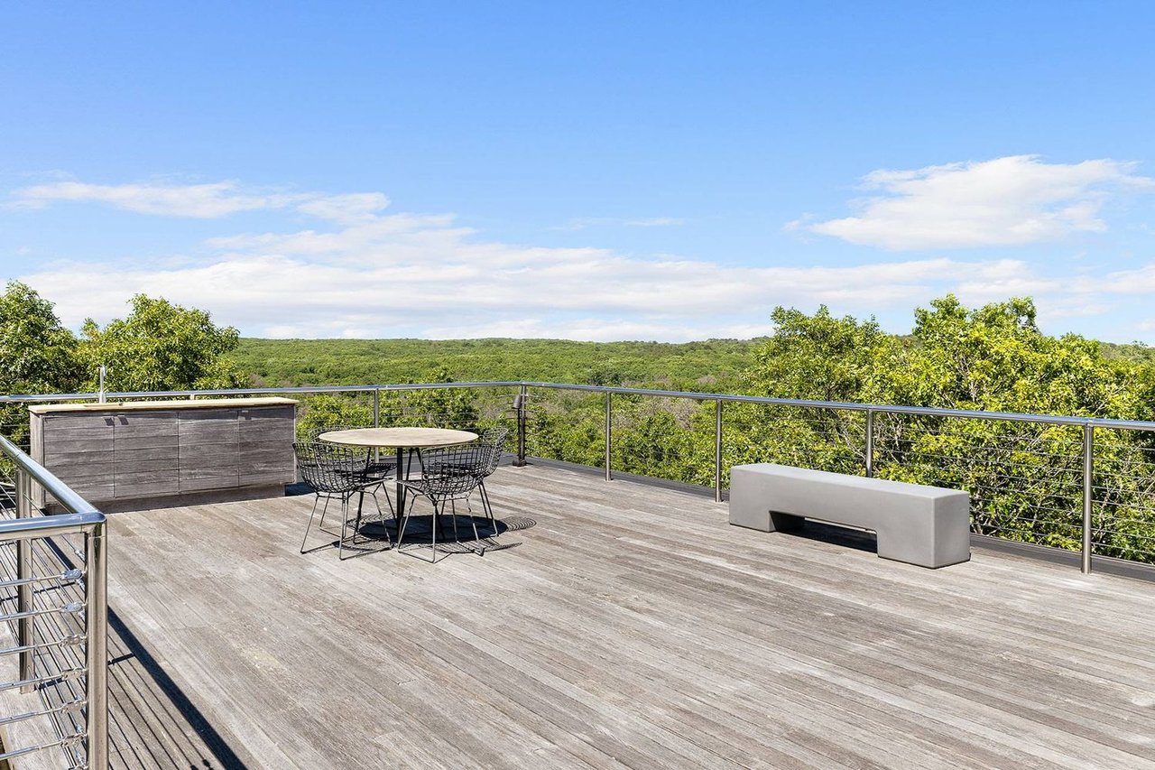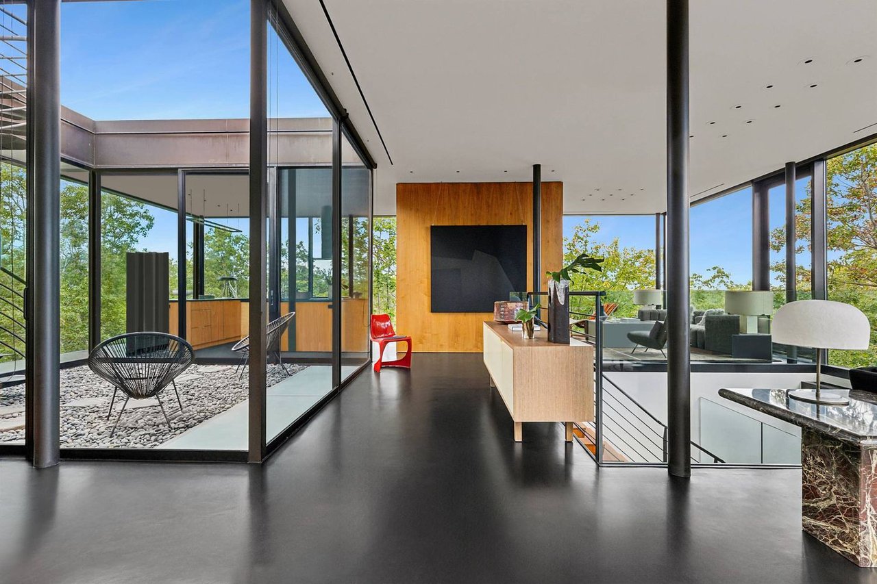 Secreted within a hidden, private Hamptons enclave, minutes from three of the most coveted East End villages, discover "SkyBox," a once-in-a-lifetime opportunity to live in a secluded, published work of modern art, an artist compound like no other. This award-winning Water Mill creation, by the world-renowned team at 1100 Architect, is a hillside sculpture floating effortlessly on close to 10 acres of the highest elevation anywhere in eastern Long Island, affording 360-degree views of lush farmland, the polo fields and the Atlantic Ocean. The home has 4 bedroom suites over three levels of carefully considered details and views from every window. The property also includes a sculptural pool pavilion and a professional clay tennis court that seem to emerge from their natural surroundingsm, plus there is potential opportunity for subdivision. SkyBox, with all its sylvan wonder and jaw-dropping views, refers directly to the Hamptons' history as a retreat for artists and creatives of all kinds. Now you can be one of them. SkyBox spreads out over two floors plus a foyer level, each floor becoming more lavish as you ascend towards the crowning jewel of the rooftop deck. The entry impresses with curved architectural elements, and this floor also encompasses a sophisticated thousand-bottle wine room with integrated tasting table plus laundry and a windowed flex space for a potential gym/4th bedroom. The bedroom level has a spacious primary suite with a separate dressing area and steam spa shower. There is a light-filled landing with a fabulous gallery lounge/media den, plus two spacious ensuite guest bedrooms, currently being used as art studio spaces. This floor is wrapped in an ingenious exterior fiberglass screening, filtering the light gorgeously. The floating staircase takes you up to a truly stunning upper living level, surrounded by floor-to-ceiling windows with motorized sun shades; there are treetop sky & water views in every direction. The central atrium provides dramatic interest, leading to a conversation den, the great room and formal dining. The open kitchen with breakfast nook has built-in cabinetry & luxury appliances. A spiral atrium stair is your portal to the rooftop deck, the ultimate feature of Skybox, with unbelievable panoramic ocean views, a built-in wet bar, and 560 square feet of entertaining space. Other areas of the property include the masterful pool pavilion, also designed by 1100 Architect, beautifully incorporating warm wood with the steel pergola and 15x50 heated Gunite infinity pool and separate spa, evoking a timeless feel of California modernism. There is a chic full pool bath here as well as a separate cabana lounge, outdoor kitchen, & fire pit. Just beyond lies the Har-Tru tennis court with courtside lounge, and a freestanding two-car garage. By far, this is the best value in the Hamptons for improved land with significant architectural pedigree, priced far below replacement value. Potential for further expansion, subdivision or family compound. The location is an East End trifecta: easy access to three prime villages, ocean and bay beaches, and farm fields. Living at SkyBox is like living in a breathtaking work of modern art: now it can be yours.
