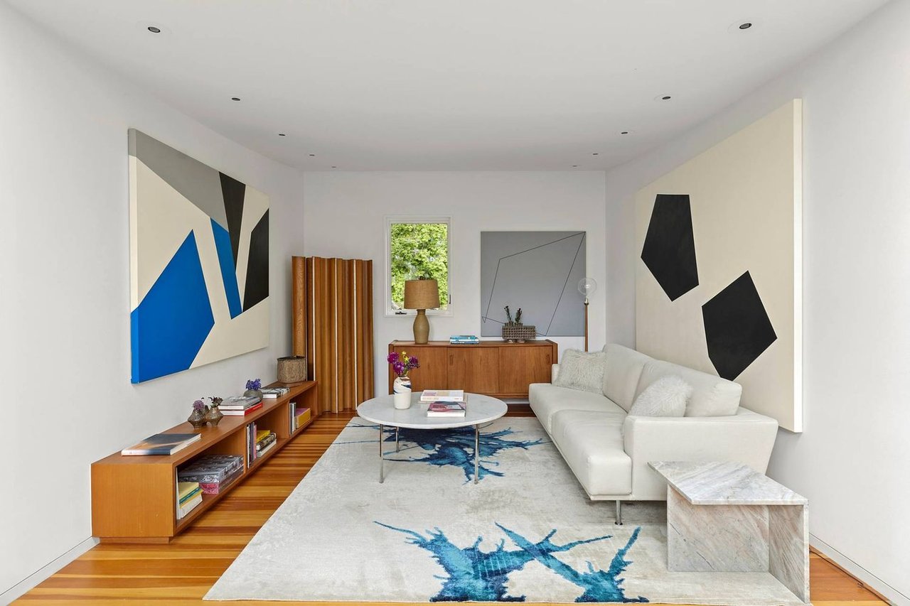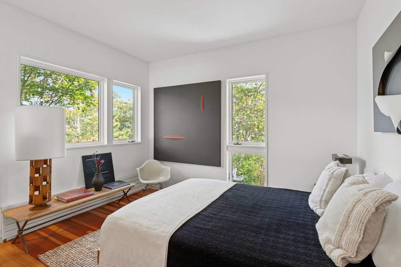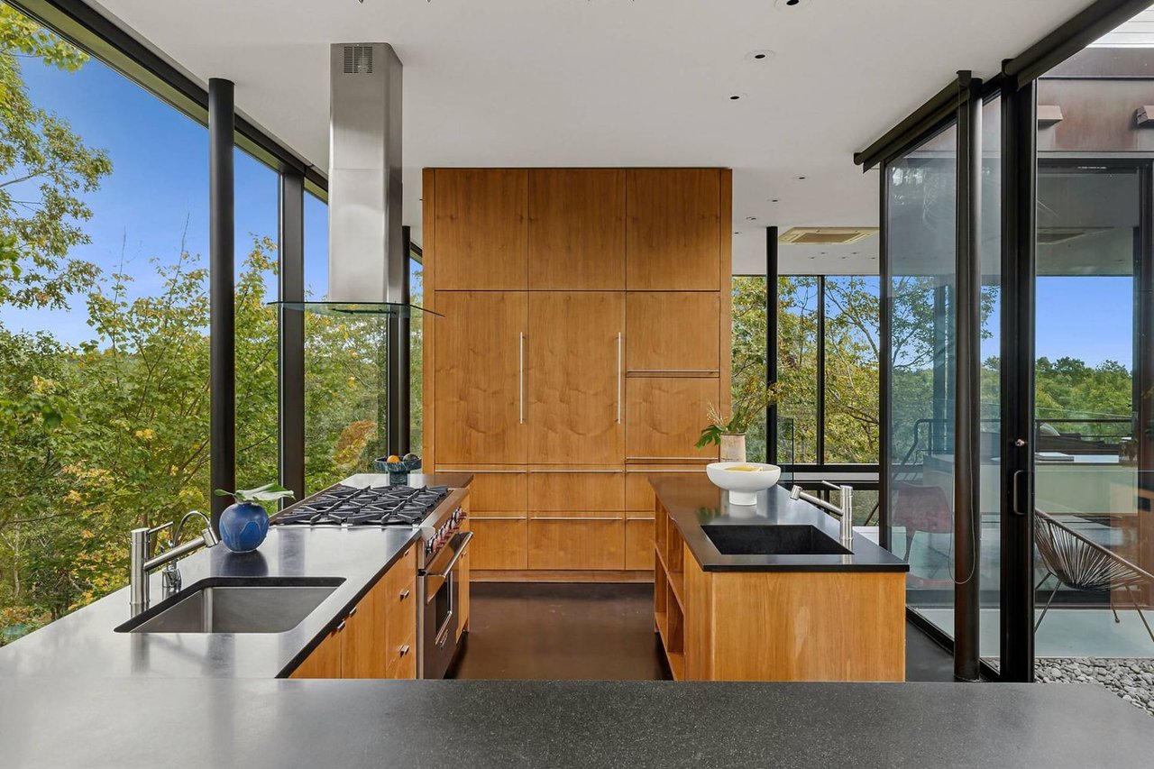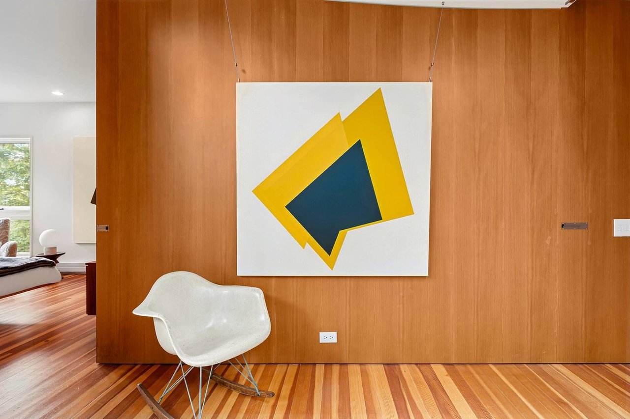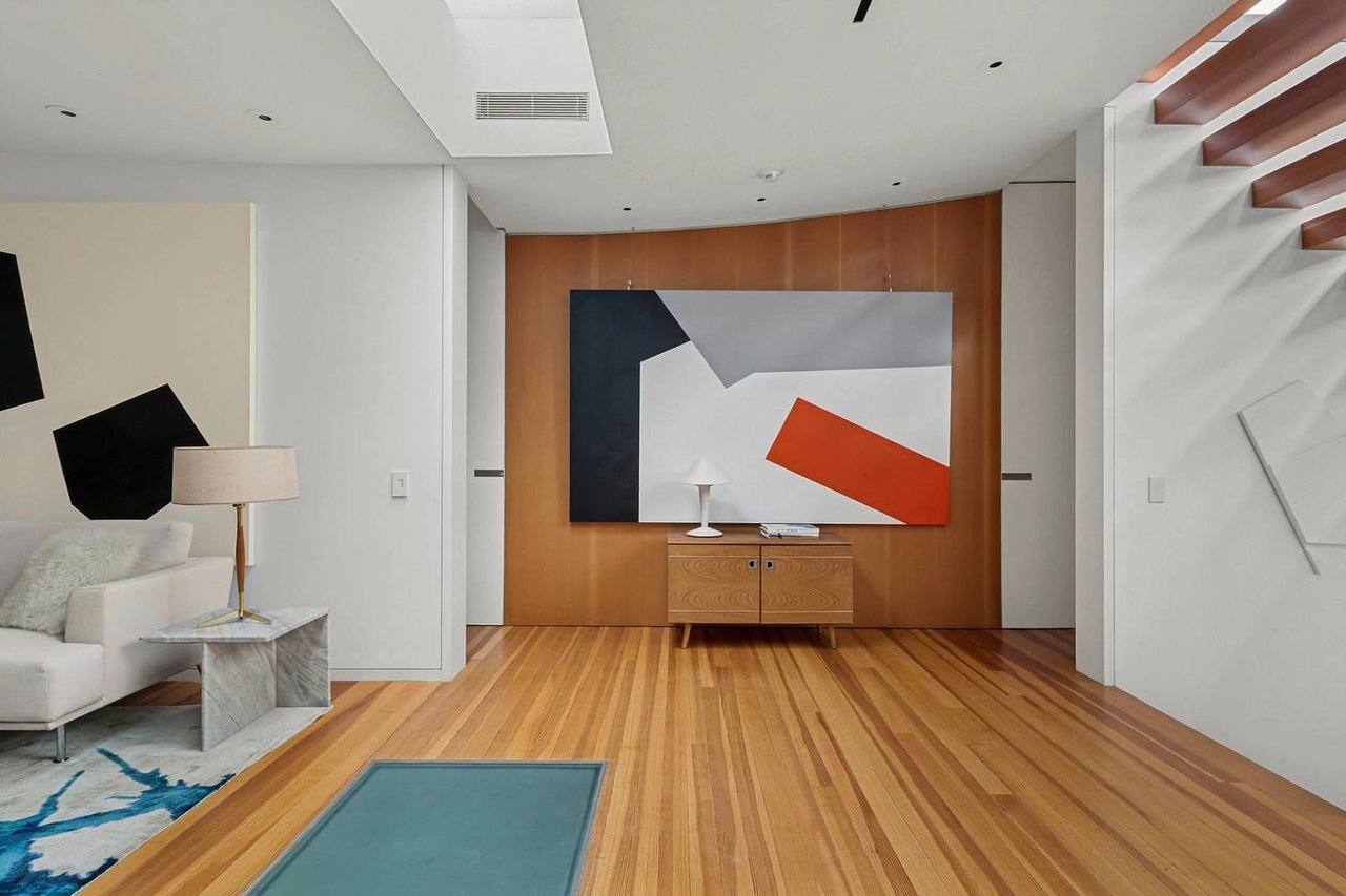 Secreted within a hidden, private Hamptons enclave, minutes from three of the most coveted East End villages, discover "SkyBox," a once-in-a-lifetime opportunity to live in a secluded, published work of modern art, an artist compound like no other. This award-winning Water Mill creation, by the world-renowned team at 1100 Architect, is a hillside sculpture floating effortlessly on close to 10 acres of the highest elevation anywhere in eastern Long Island, affording 360-degree views of lush farmland, the polo fields and the Atlantic Ocean. The home has 4 bedroom suites over three levels of carefully considered details and views from every window. The property also includes a sculptural pool pavilion and a professional clay tennis court that seem to emerge from their natural surroundingsm, plus there is potential opportunity for subdivision. SkyBox, with all its sylvan wonder and jaw-dropping views, refers directly to the Hamptons' history as a retreat for artists and creatives of all kinds. Now you can be one of them. SkyBox spreads out over two floors plus a foyer level, each floor becoming more lavish as you ascend towards the crowning jewel of the rooftop deck. The entry impresses with curved architectural elements, and this floor also encompasses a sophisticated thousand-bottle wine room with integrated tasting table plus laundry and a windowed flex space for a potential gym/4th bedroom. The bedroom level has a spacious primary suite with a separate dressing area and steam spa shower. There is a light-filled landing with a fabulous gallery lounge/media den, plus two spacious ensuite guest bedrooms, currently being used as art studio spaces. This floor is wrapped in an ingenious exterior fiberglass screening, filtering the light gorgeously. The floating staircase takes you up to a truly stunning upper living level, surrounded by floor-to-ceiling windows with motorized sun shades; there are treetop sky & water views in every direction. The central atrium provides dramatic interest, leading to a conversation den, the great room and formal dining. The open kitchen with breakfast nook has built-in cabinetry & luxury appliances. A spiral atrium stair is your portal to the rooftop deck, the ultimate feature of Skybox, with unbelievable panoramic ocean views, a built-in wet bar, and 560 square feet of entertaining space. Other areas of the property include the masterful pool pavilion, also designed by 1100 Architect, beautifully incorporating warm wood with the steel pergola and 15x50 heated Gunite infinity pool and separate spa, evoking a timeless feel of California modernism. There is a chic full pool bath here as well as a separate cabana lounge, outdoor kitchen, & fire pit. Just beyond lies the Har-Tru tennis court with courtside lounge, and a freestanding two-car garage. By far, this is the best value in the Hamptons for improved land with significant architectural pedigree, priced far below replacement value. Potential for further expansion, subdivision or family compound. The location is an East End trifecta: easy access to three prime villages, ocean and bay beaches, and farm fields. Living at SkyBox is like living in a breathtaking work of modern art: now it can be yours.