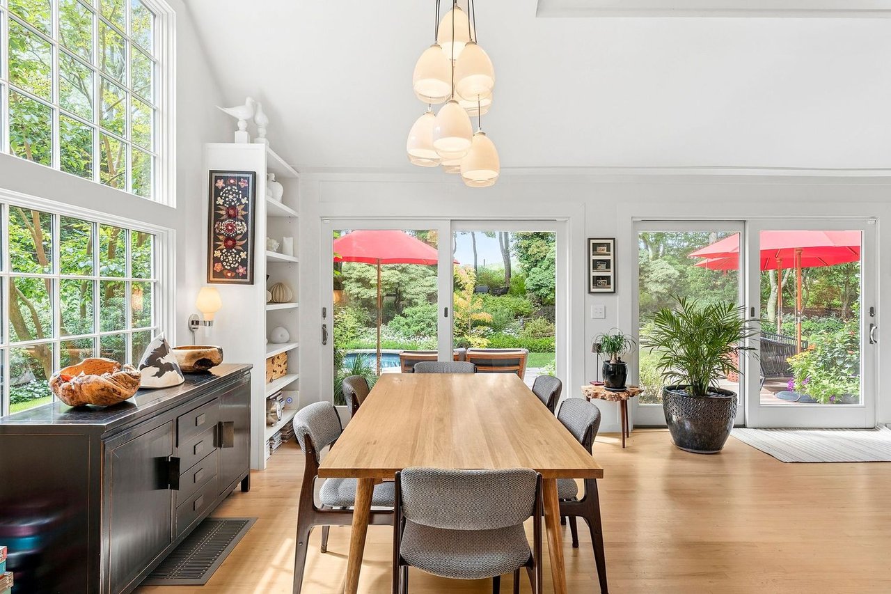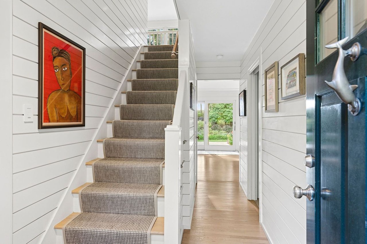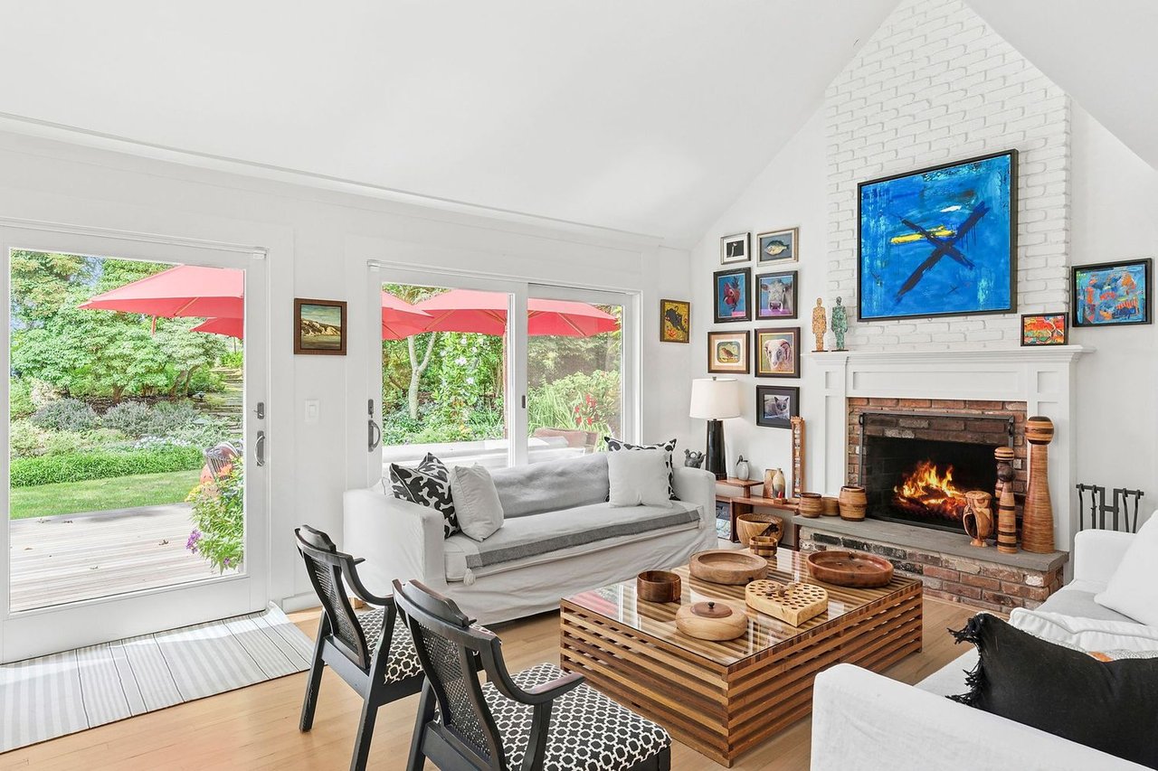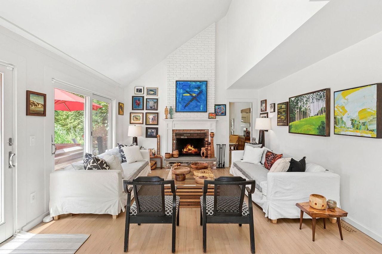 The property has undergone many thoughtful renovations, including a full kitchen revamp and recent renovations of primary and guest bathrooms. Enhancements such as a media den, shiplap walls and transom windows showcase its timeless appeal, and easy expansion opportunities abound. There is a main floor primary suite, and plenty of storage on the lofty lower level, plus a double-height art studio with cathedral ceilings and skylights.