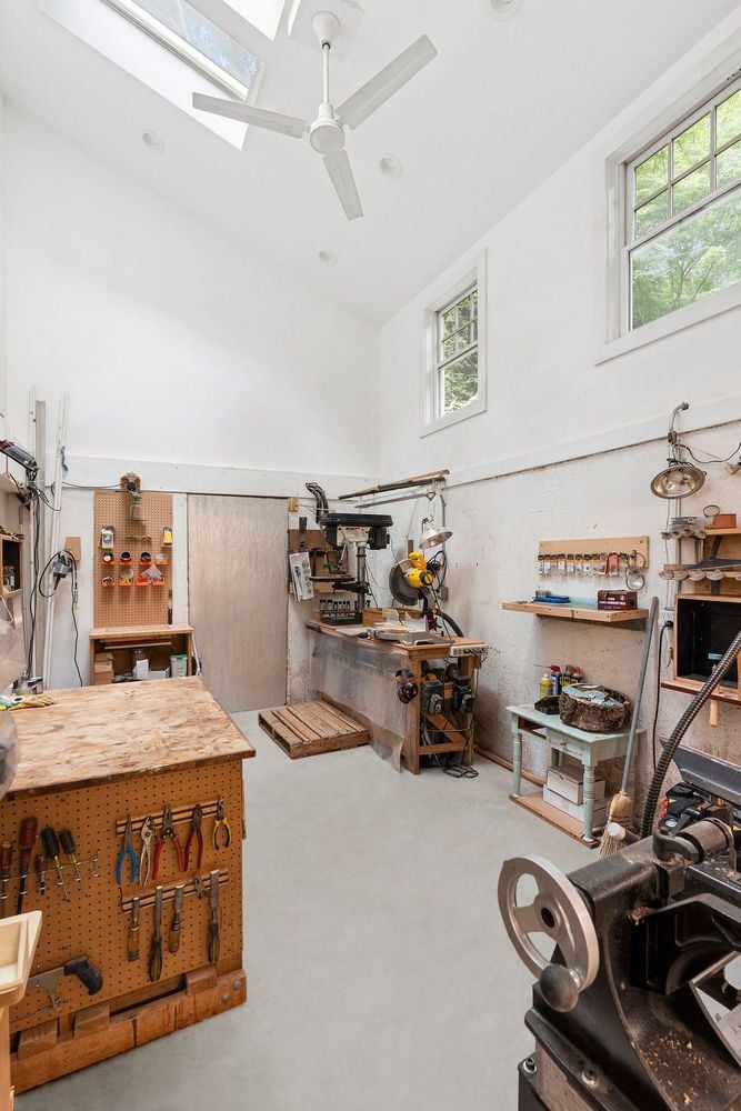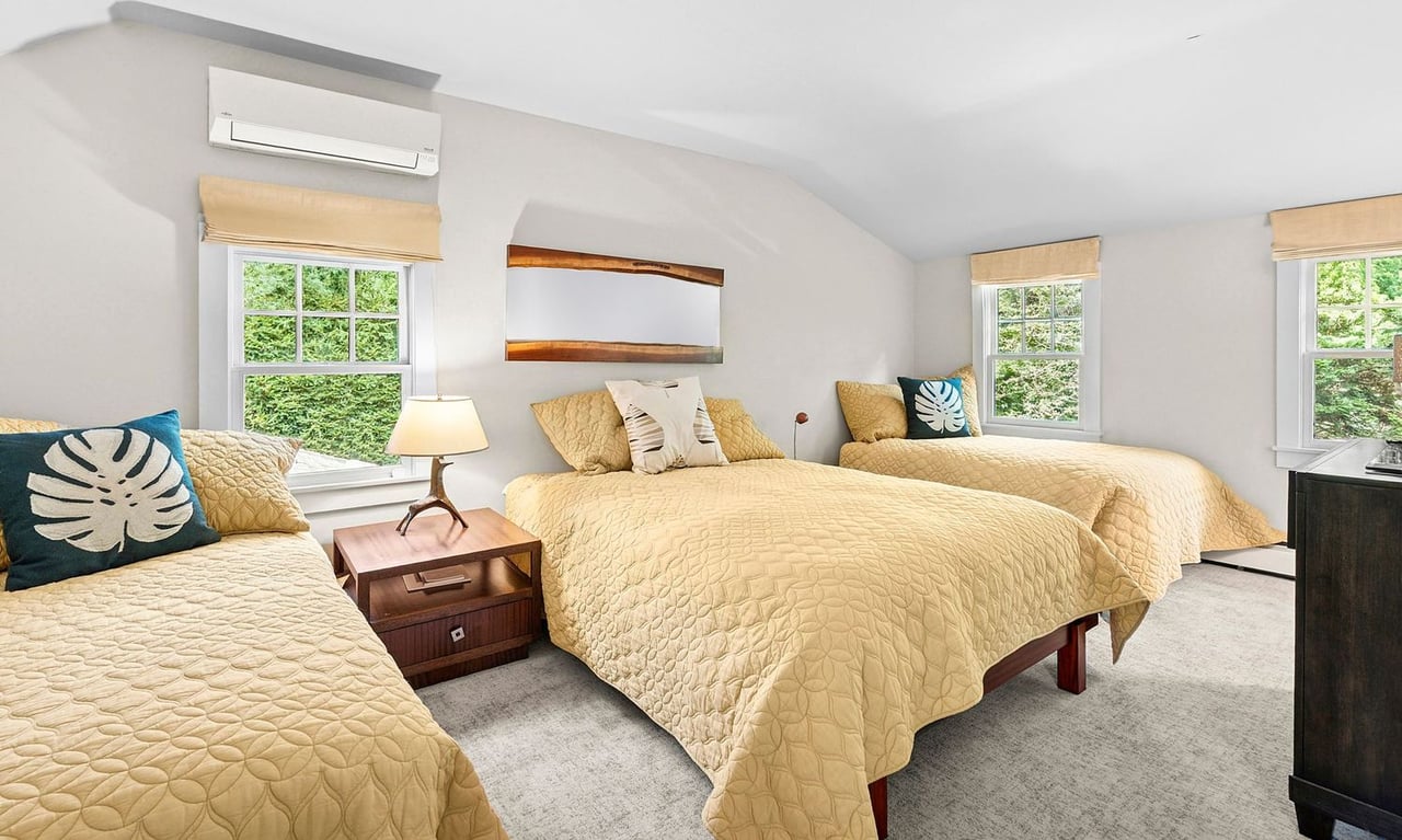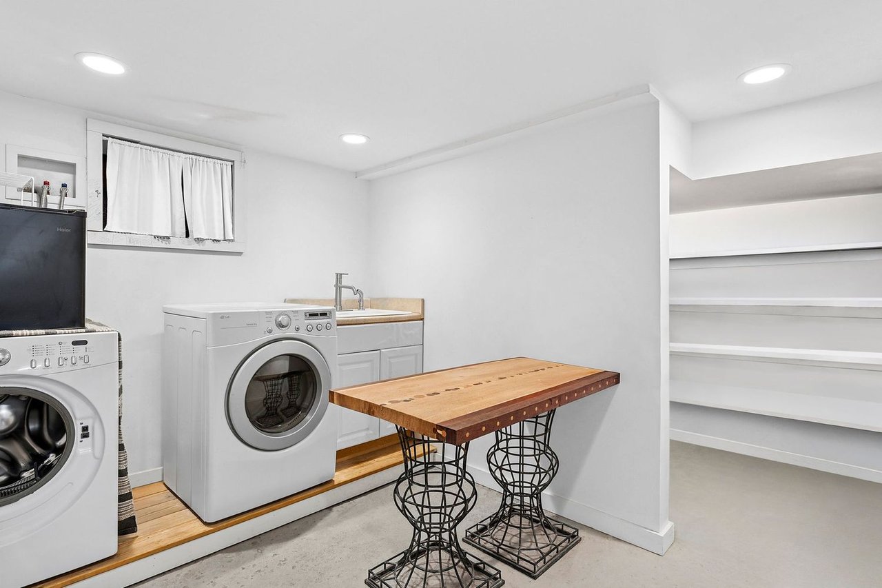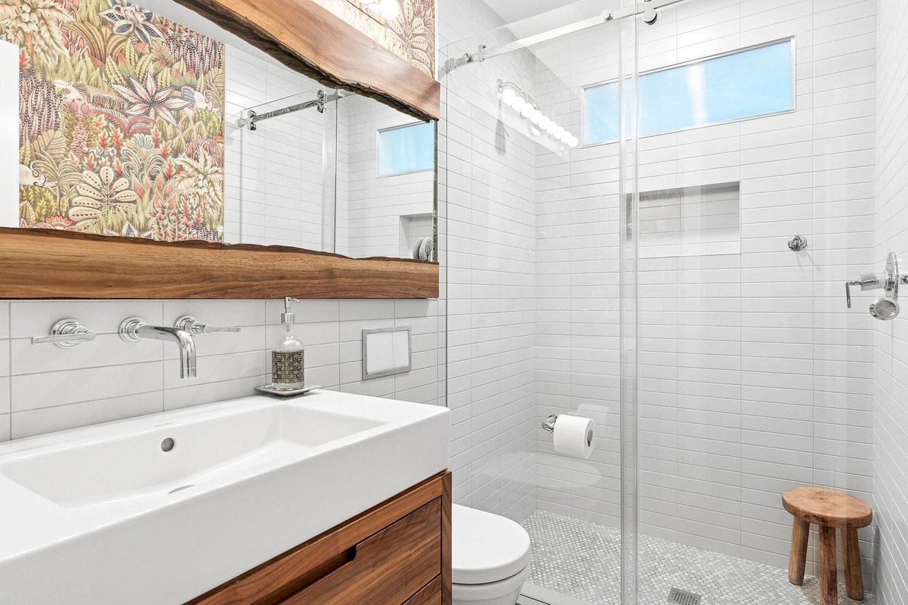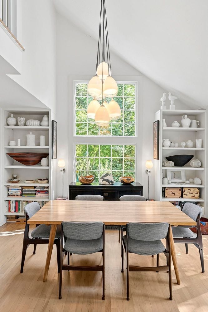 The property has undergone many thoughtful renovations, including a full kitchen revamp and recent renovations of primary and guest bathrooms. Enhancements such as a media den, shiplap walls and transom windows showcase its timeless appeal, and easy expansion opportunities abound. There is a main floor primary suite, and plenty of storage on the lofty lower level, plus a double-height art studio with cathedral ceilings and skylights.