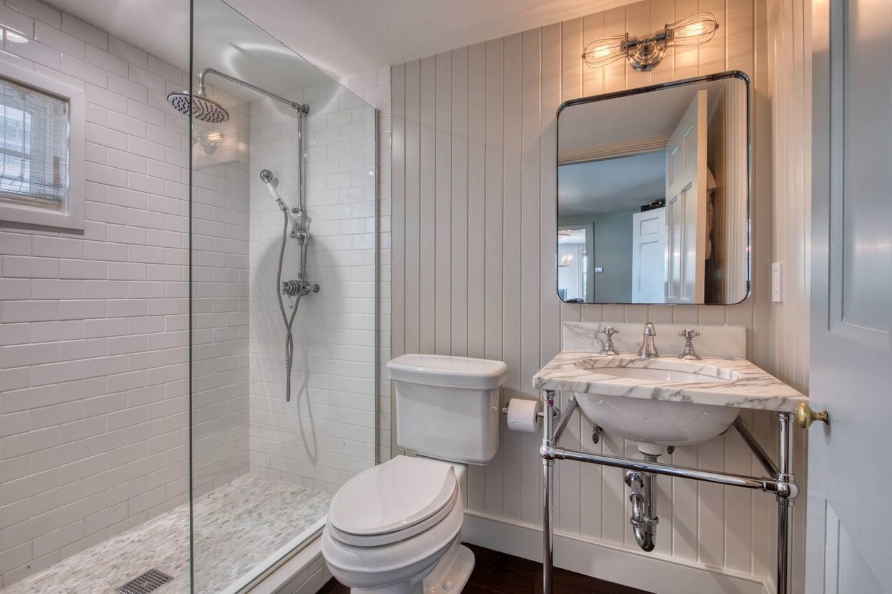 Situated on prestigious Suffolk Street, this early 1800s Georgian residence represents the pinnacle of Sag Harbor Village living. Meticulously restored to honor its historic soul while integrating modern sophistication, the home offers a seamless blend of period detail and contemporary luxury. The front elevation, featuring classic 6-over-6 windows and a striking entry with original sidelights, gives way to an interior defined by grandeur and light. Beyond the threshold, two double-sized parlors exude an air of effortless sophistication, perfect for both formal entertaining and quiet reflection. The heart of the home is the newly renovated, sun-filled eat-in kitchen, which serves as a bridge between the residence's historic roots and its modern, functional design. Custom French doors open to a private, terraced garden, creating a seamless indoor-outdoor flow ideal for al fresco dining. This outdoor sanctuary is anchored by a heated Gunite pool and framed by lush, manicured landscaping, offering a rare level of seclusion and tranquility in the center of the Village. Spanning 3,400 SF +/- with five bedrooms and four bathrooms, the property's layout is as practical as it is elegant. Unique to this location, the home includes coveted off-street parking accessible via Amity Street, providing a level of convenience seldom found in historic Village properties. Every detail, from the freshly painted facades to the impeccably maintained finishes, has been curated to meet the highest standards of luxury. Located mere moments from the world-class dining, boutiques, and the waterfront that define Sag Harbor, this residence is more than a home-it is a piece of history. This is a rare opportunity to acquire a distinguished estate on one of the Hamptons' most sought-after streets.