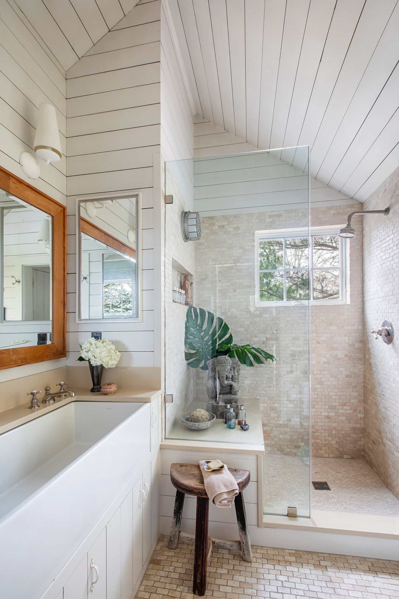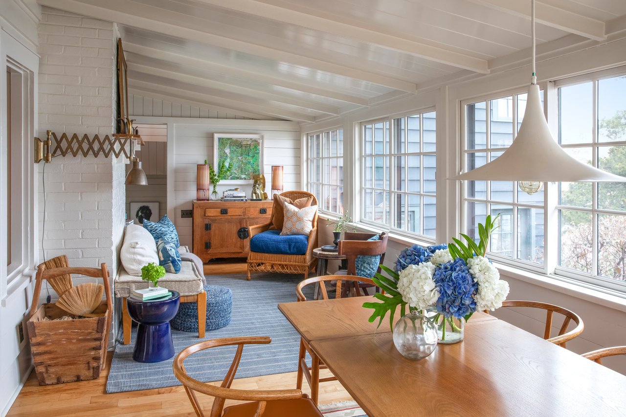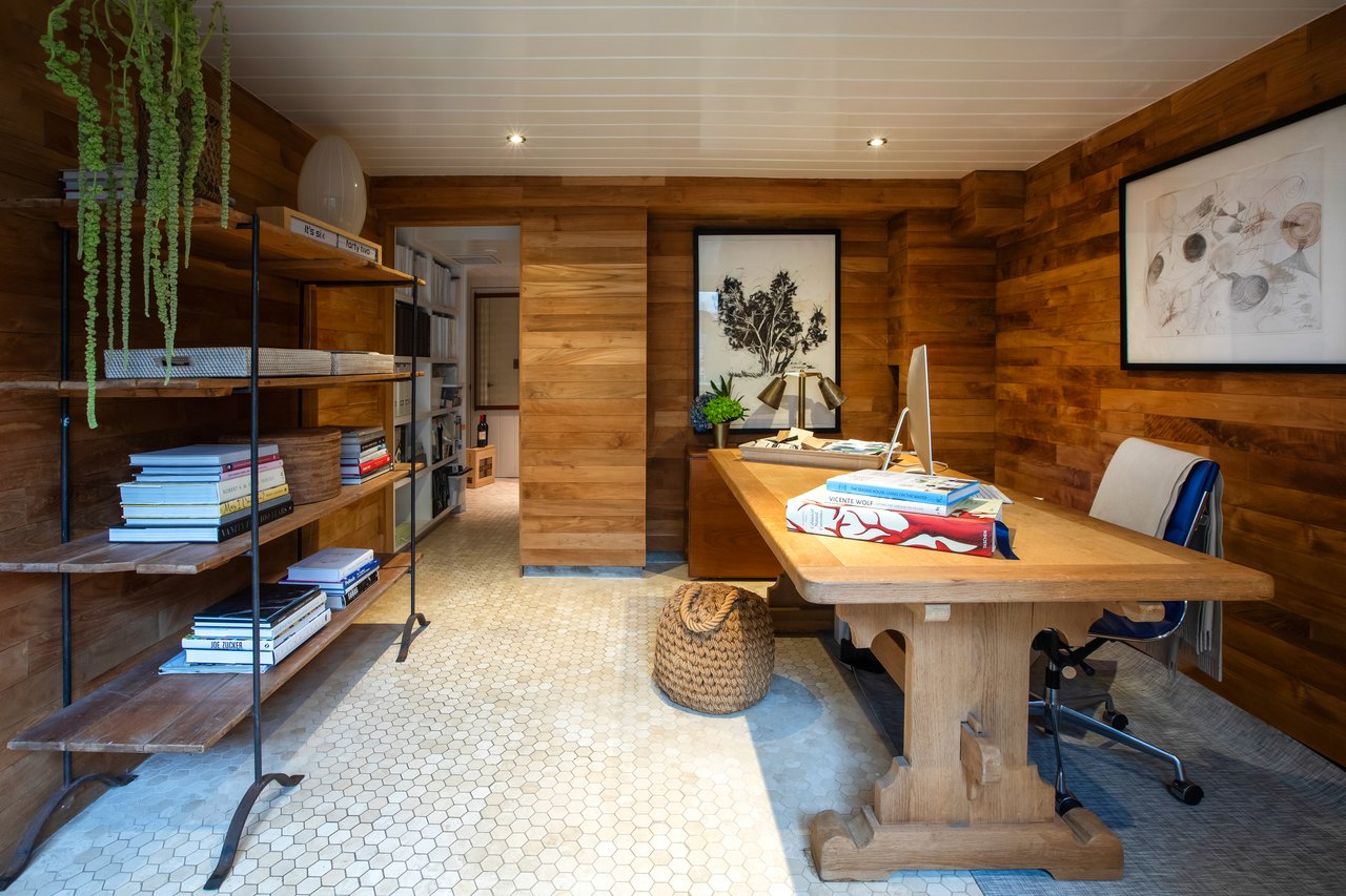 An original 1930s cottage, the home was thoughtfully re-envisioned in collaboration with architect James Merrell and guided by the owners' global travels and passion for art and design. Preserving scale and honoring enduring craftsmanship, aged Indonesian teak flooring grounds walls, ceilings, and beams fully clad in cedar. The sun-filled waterside living and dining spaces open to a chef's kitchen with dual water exposures and two discreet guest quarters. An elevated primary suite with panoramic views hovers over the water. The aerie bedroom and radiant-heated bath floors make for an escapist intimacy. Below, a versatile waterfront guest room or library lounge extends to a teak-wrapped lower level housing a home office, gym, cedar-lined closet, full bath, wine cellar, and a stone-clad walk-out patio.