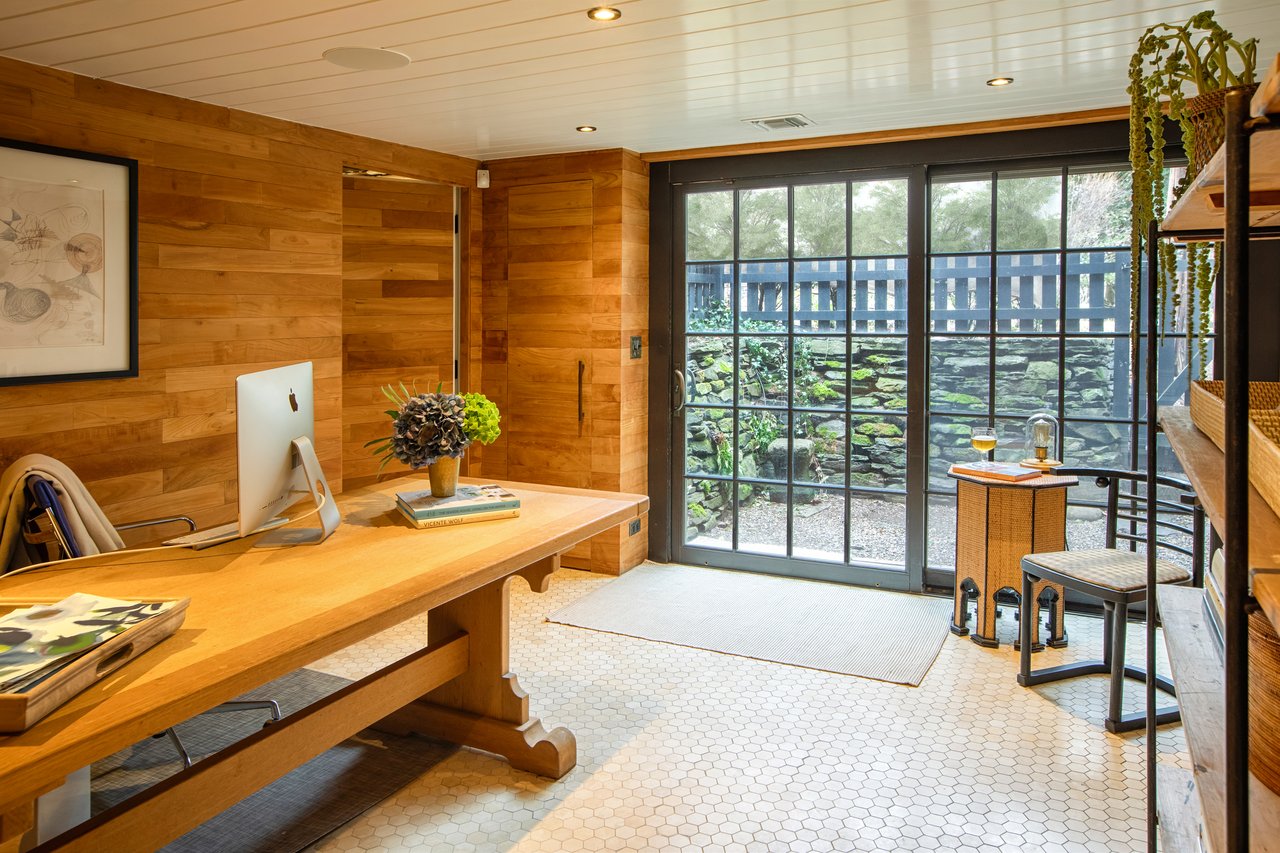 At the quiet water's edge of Morris Cove, East of Eden rests at one of Sag Harbor Village's most intimate and storied waterfront settings. Reached by a discreet lane and neighboring the former estate of John and Elaine Steinbeck, the secluded property reflects the creative and subtle sophistication that defines this historic enclave. This timeless retreat, set on a third-acre with private dock and bulkheaded frontage, welcomes you through historic wooden gates with an immediate sense of enchantment, both intimate and escapist. The home offers a singular vantage point: Open horizon before you, historic village behind, and a profound stillness throughout.